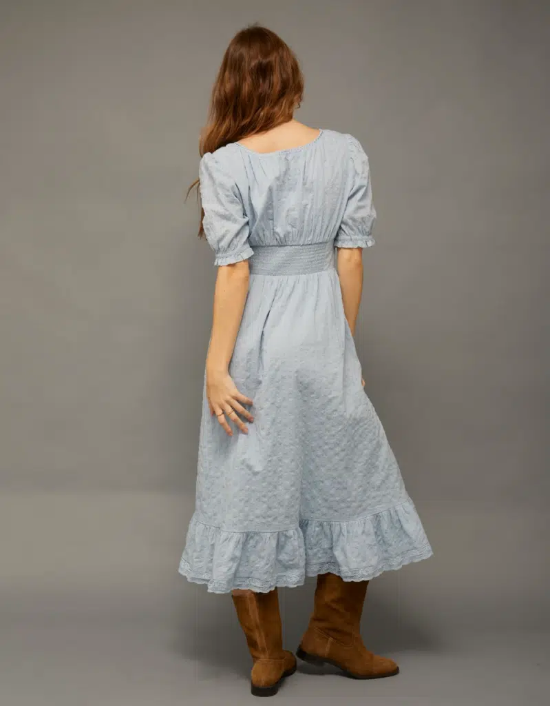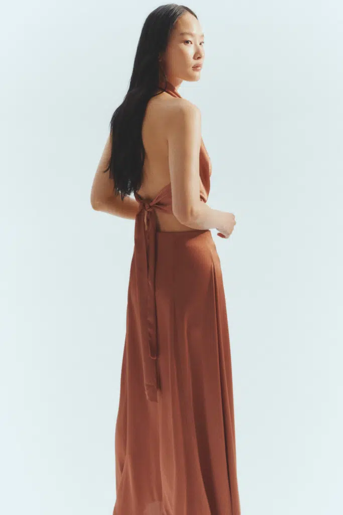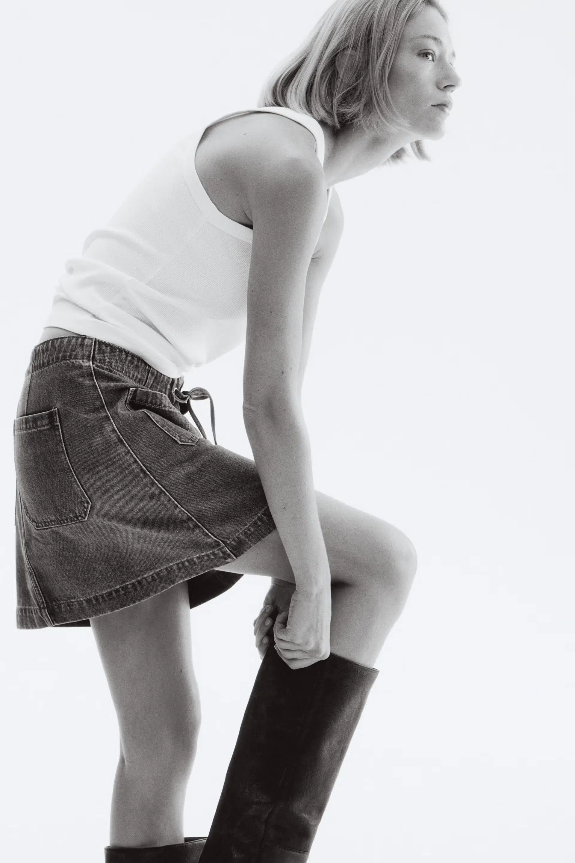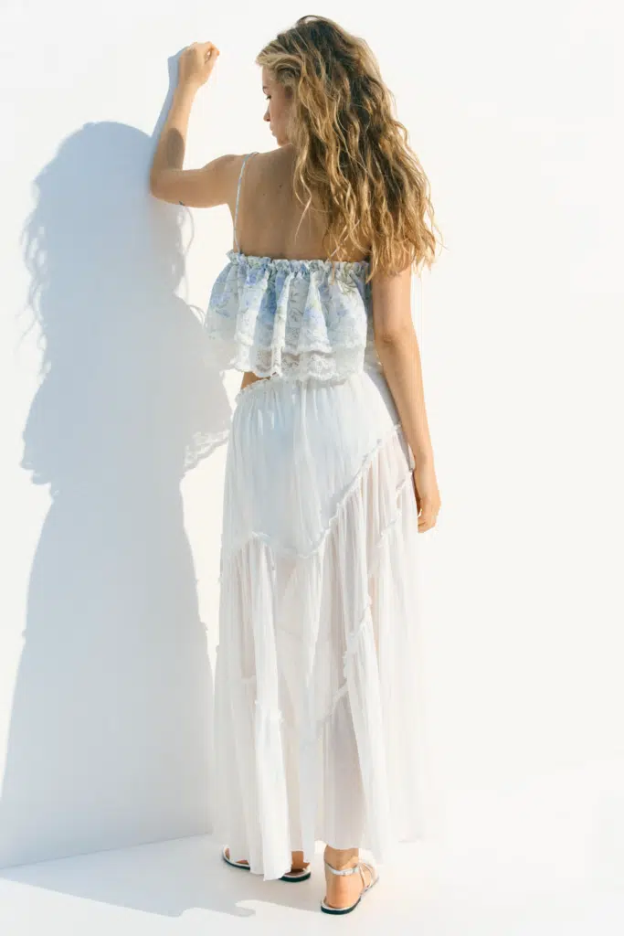 Blouse in a sheer viscose crêpe weave featuring a band collar and concealed buttons down the front, highlighted by pleated ruffles. Dropped shoulders and extra-long, flared sleeves with a slit at the cuffs. Pleats on the shoulders and at the waist for a defined silhouette. Delicate eyelash stitching at the cuffs and hem.