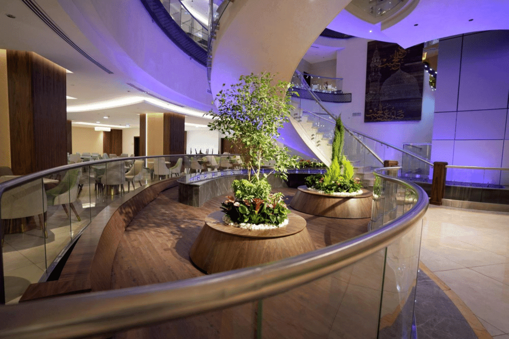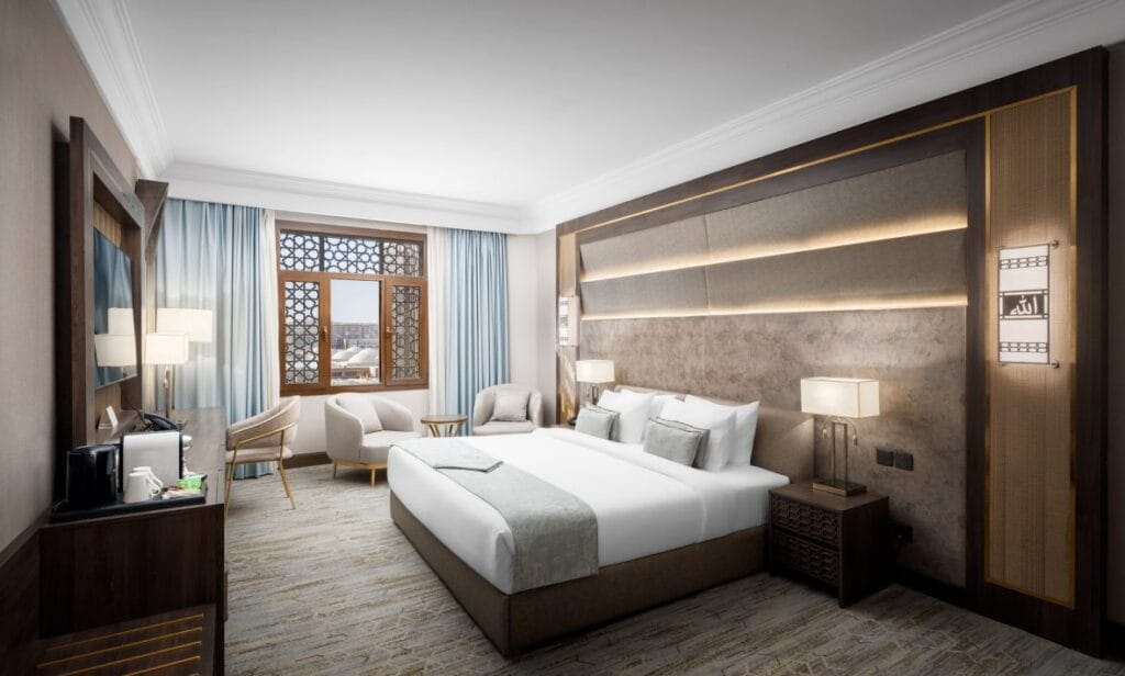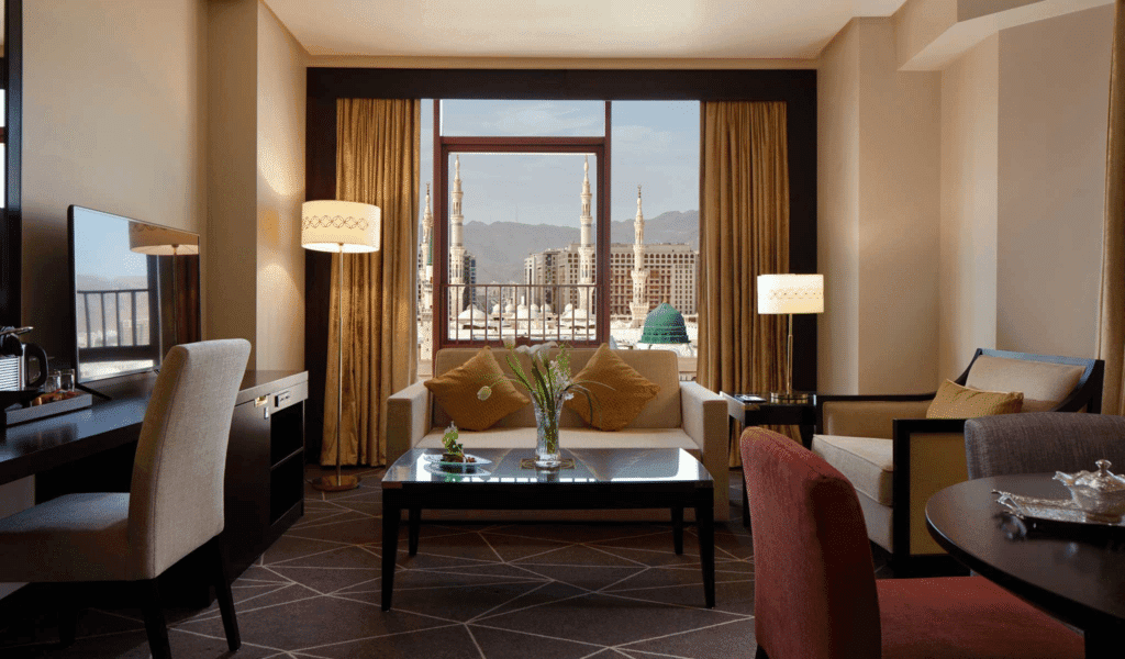 Pullman Zamzam Madina — steps from Al‑Masjid an‑Nabawi with contemporary Arabic‑French design. Rooftop rooms face the Haram. Ideal for two: prayer‑balconies, signature dining, family lounges, fast Umrah/Hajj services, multilingual concierge. In central Medina, this hotel places markets, eateries, the Green Dome and the Beautiful Names of Allah Gallery within easy walking distance—ideal for two travelers on pilgrimage or a cultural visit. Enjoy a tranquil spa.