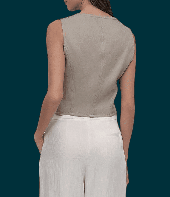 Discover timeless elegance with DKNY’s S/L Zip Front Seamed top. In a versatile beige hue, this chic piece enhances any wardrobe. Perfect for layering, its sleek design and zipper detail offer a sophisticated, modern touch to your everyday style.