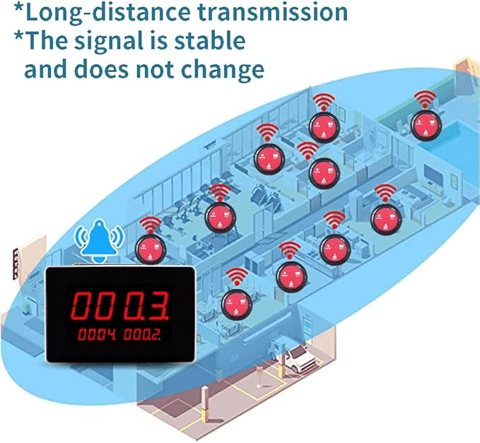 - Long Distance Signal Range: Calling system highly anti-interference and system signal range covers 328 feet in open area(Walls, building and other objects will reduce operating distance, depends on practical distance).